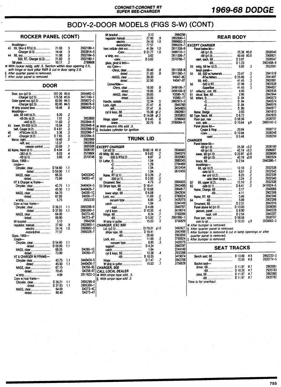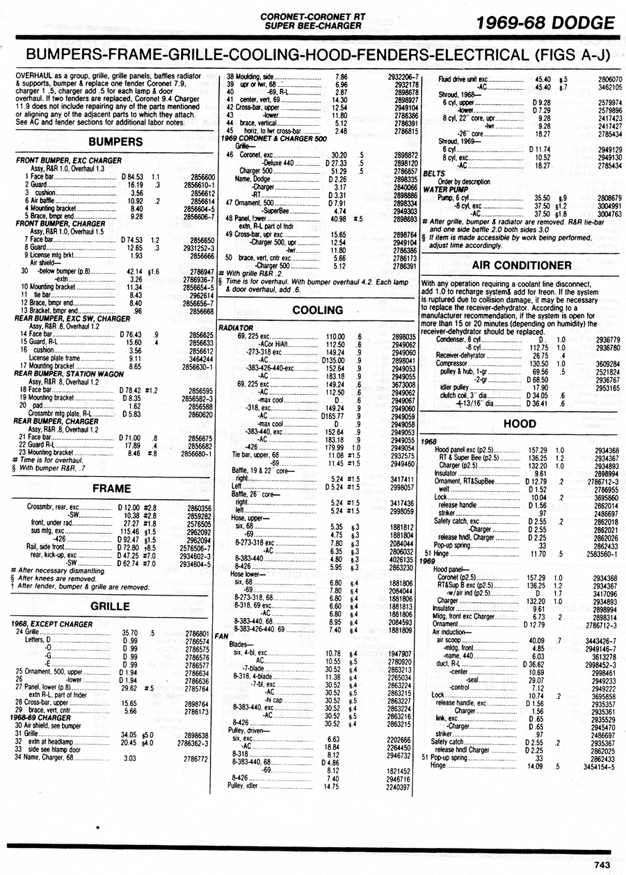 | These sheets list many Coronet factory parts numbers and can help in locating new old stock (NOS) or good used parts for a restoration. Page 1 Page 2 Page 3 Page 4 Page 5 Page 6 Page 7 Page 8 Page 9 Page 10 Page 11 Page 12 Page 13 Page 14 |